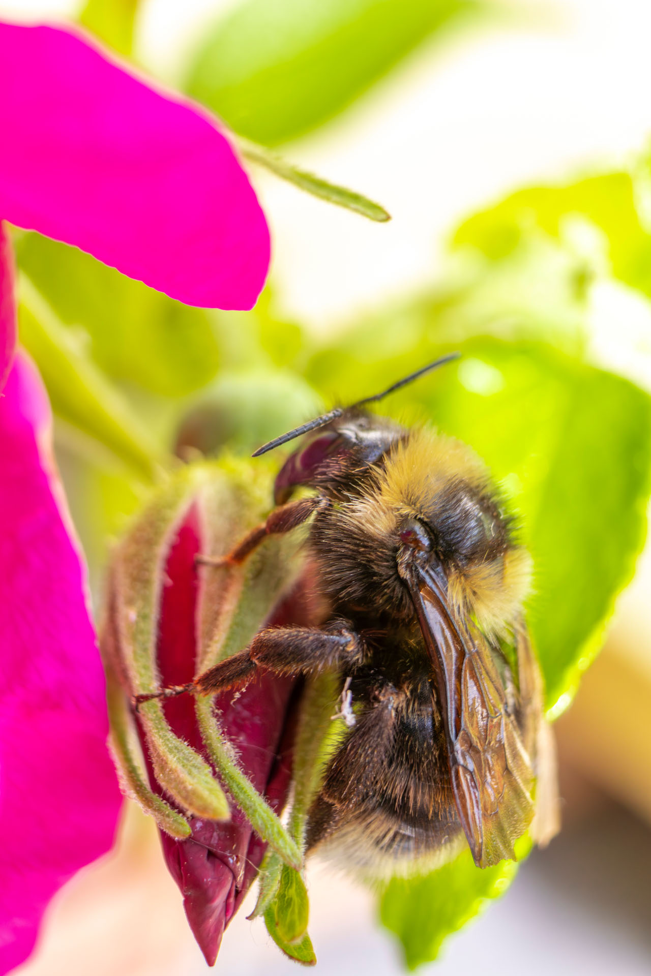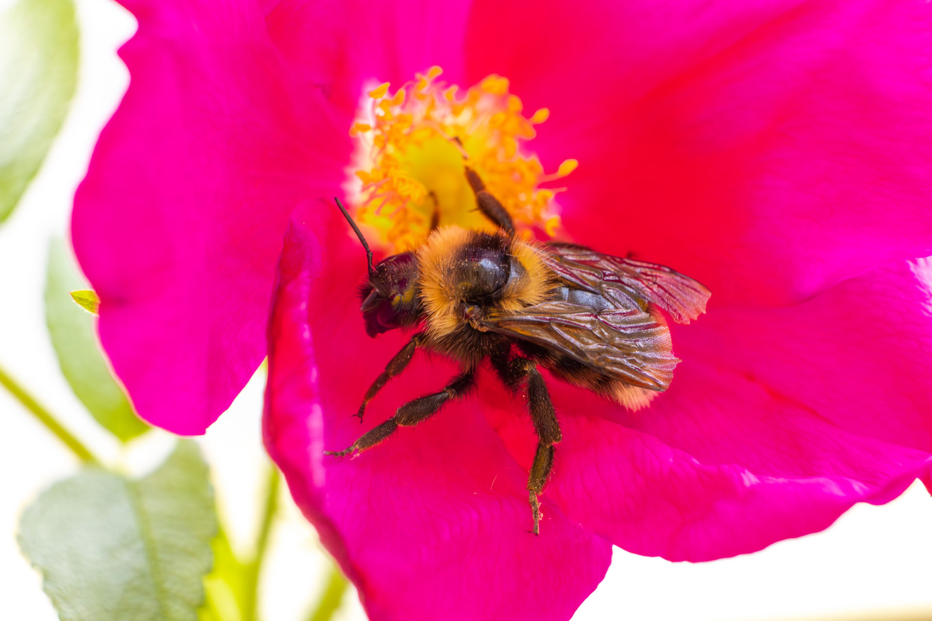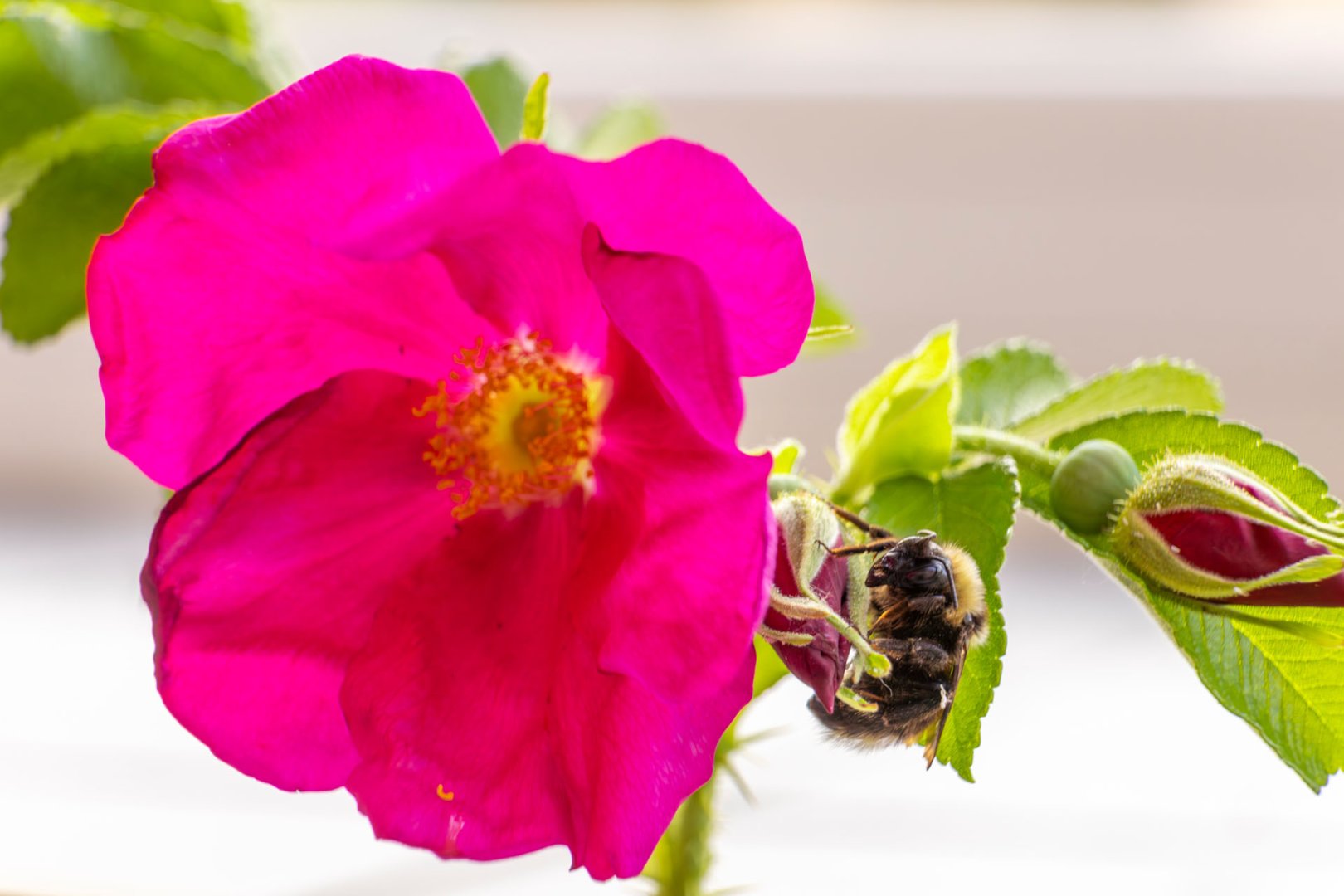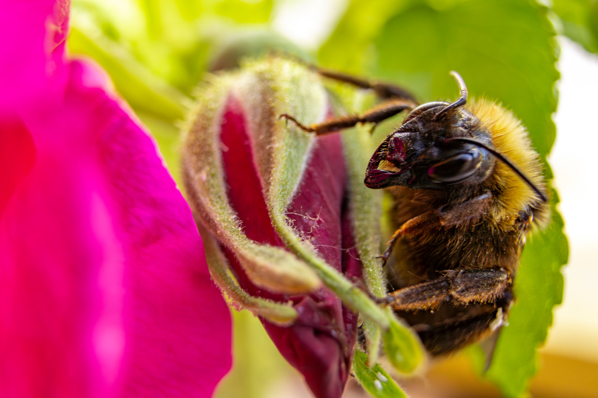 Auge in Auge mit der Hummel auf der Apfelrose