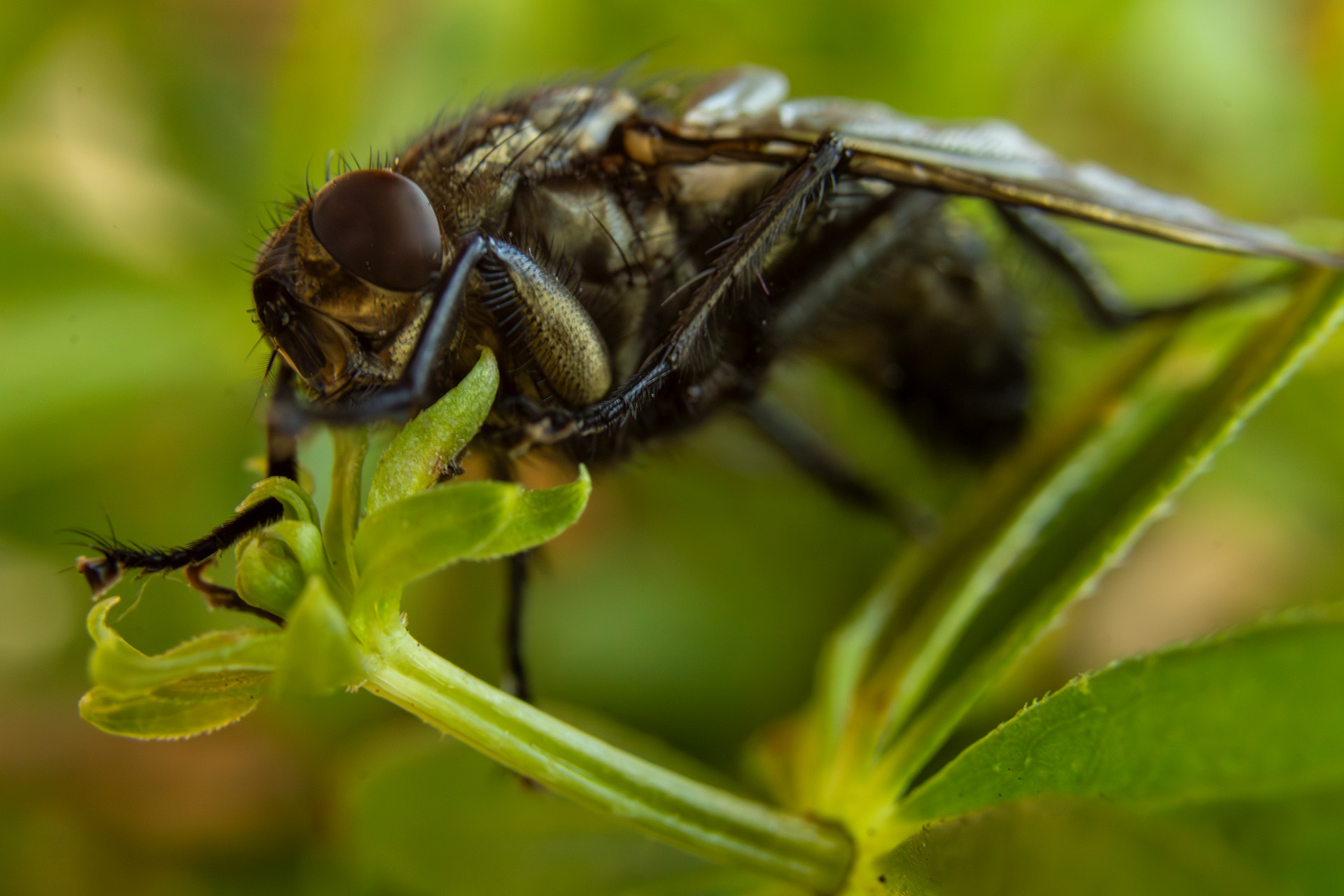 Fliege auf grünem Blatt